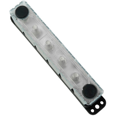 The Egis Mobile Electric 6250-600 is a 250A-rated MaxiBus power distribution block featuring six 5/16" (M8) studs, designed for securing high-current electrical connections. Suitable for harsh environments, this unit is ideal for marine or vehicle applications. It is commonly used for organizing cable connections, with an optional insulating cover available.