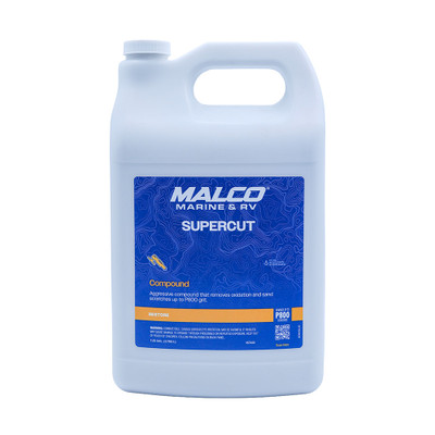 Malco Marine Super Cut Compound is an ultra-aggressive compound designed to remove P800 and finer dual action or wet sand scratches and medium to light oxidation from gel coat, fiberglass, and select painted surfaces.