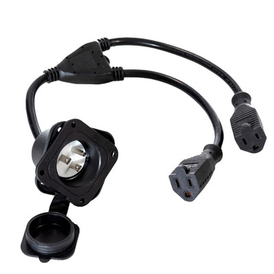 The TWPD is an AC receptacle with dual integrated extension cables, providing maximum flexibility and easy installation. Designed for exterior mounting on any vehicle, it enhances access to the charging port. Built with heavy-duty 14 AWG wire, the TWPD delivers reliable power, rated at 15 amps and 125 volts for optimal performance.